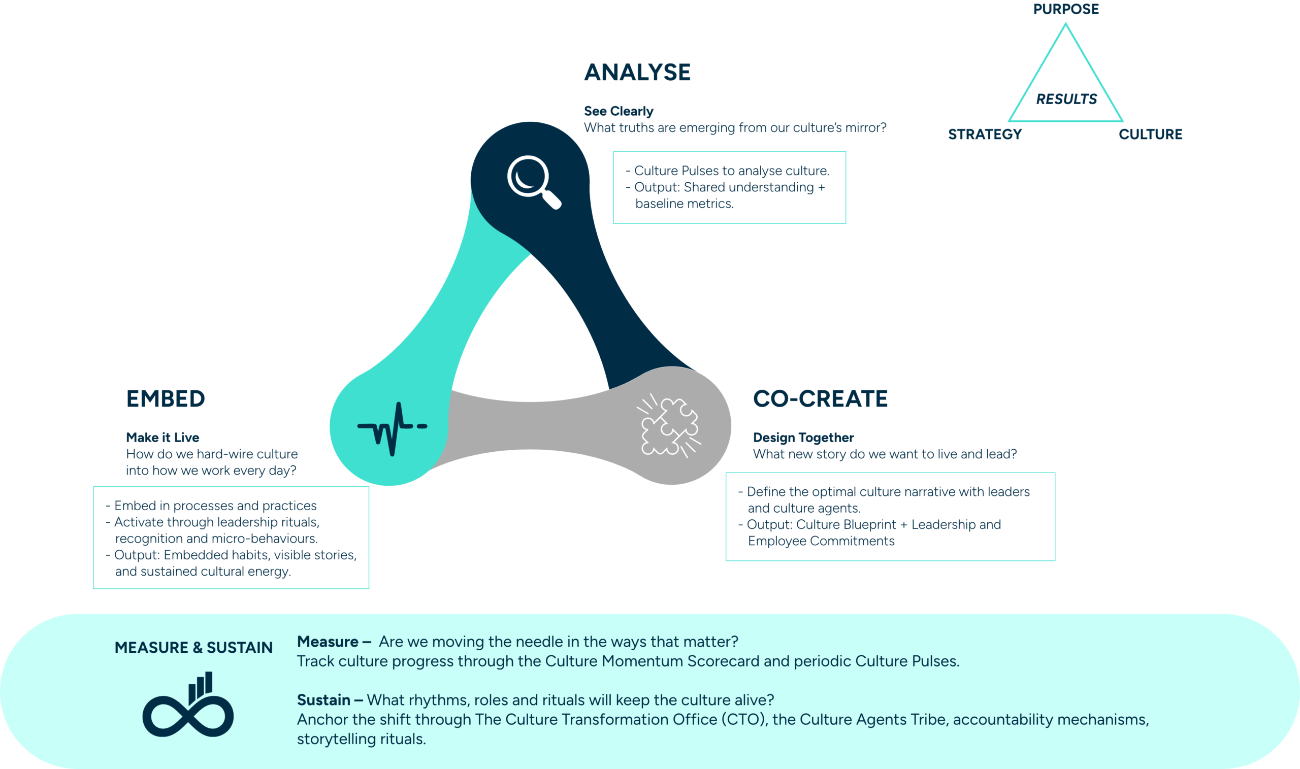 Culture Shaping is a holistic journey grounded in the ACE® framework: Analyse, Co-create and Embed.